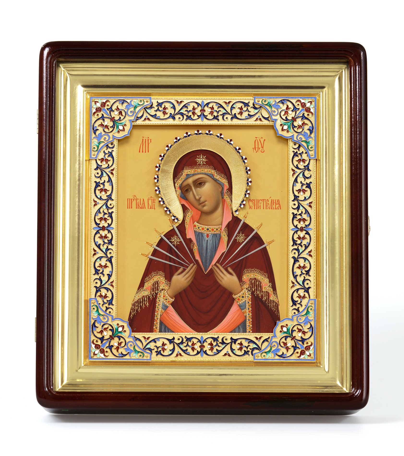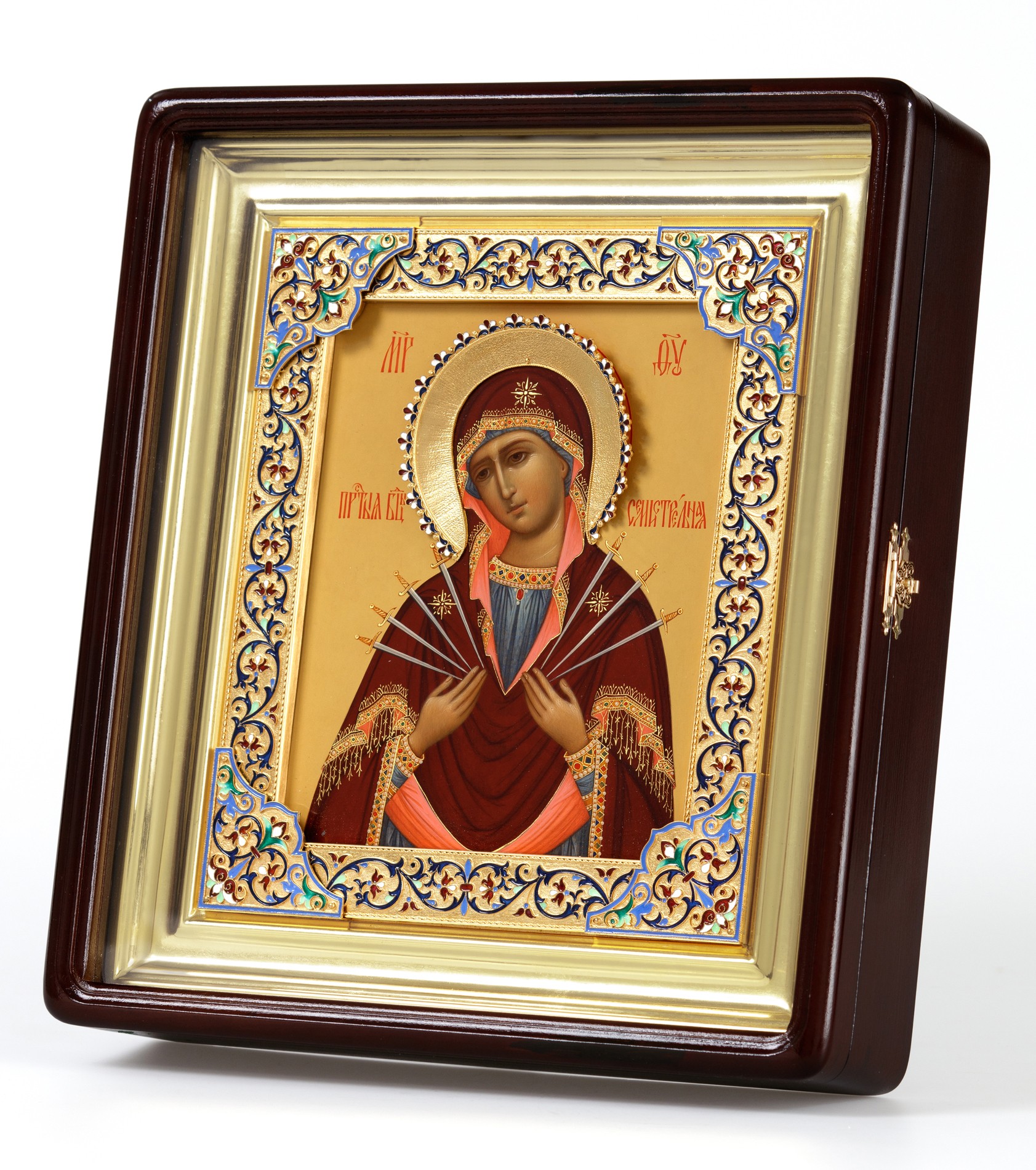 Икона живописная в серебряном окладе 30*40 / киот / Семистрельная БМ (УИН)
