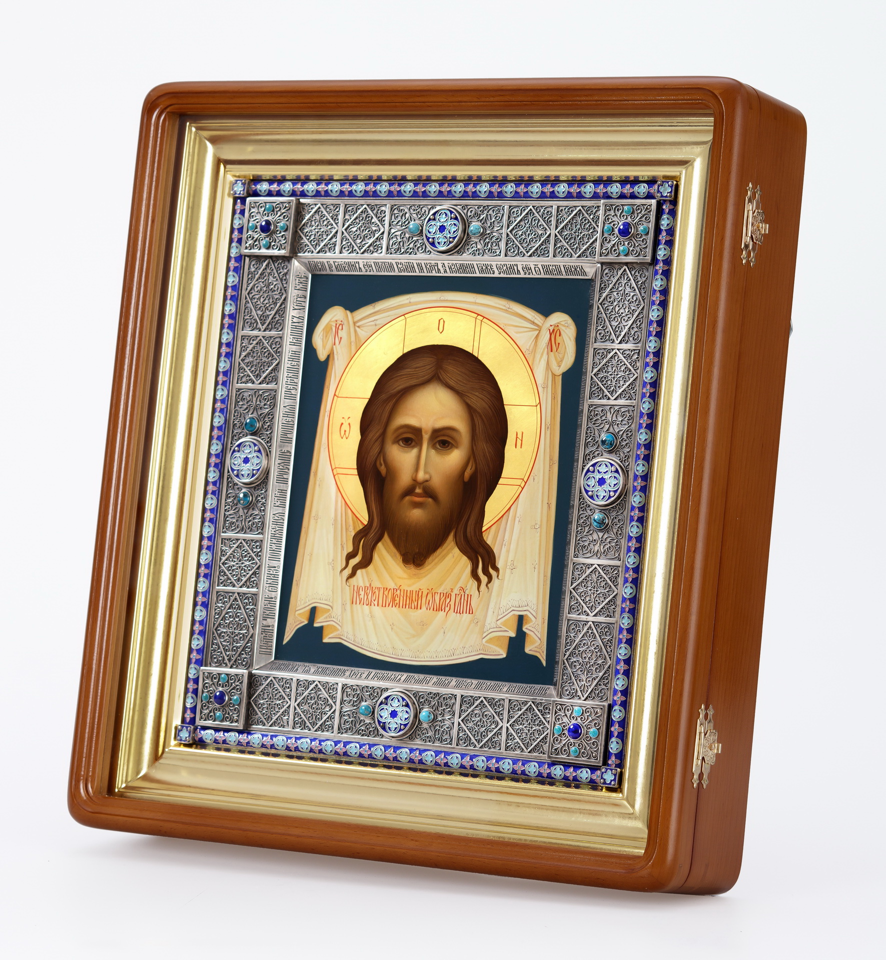 Икона живописная в серебряном окладе 40*50 / киот / Спас Нерукотворный (УИН)