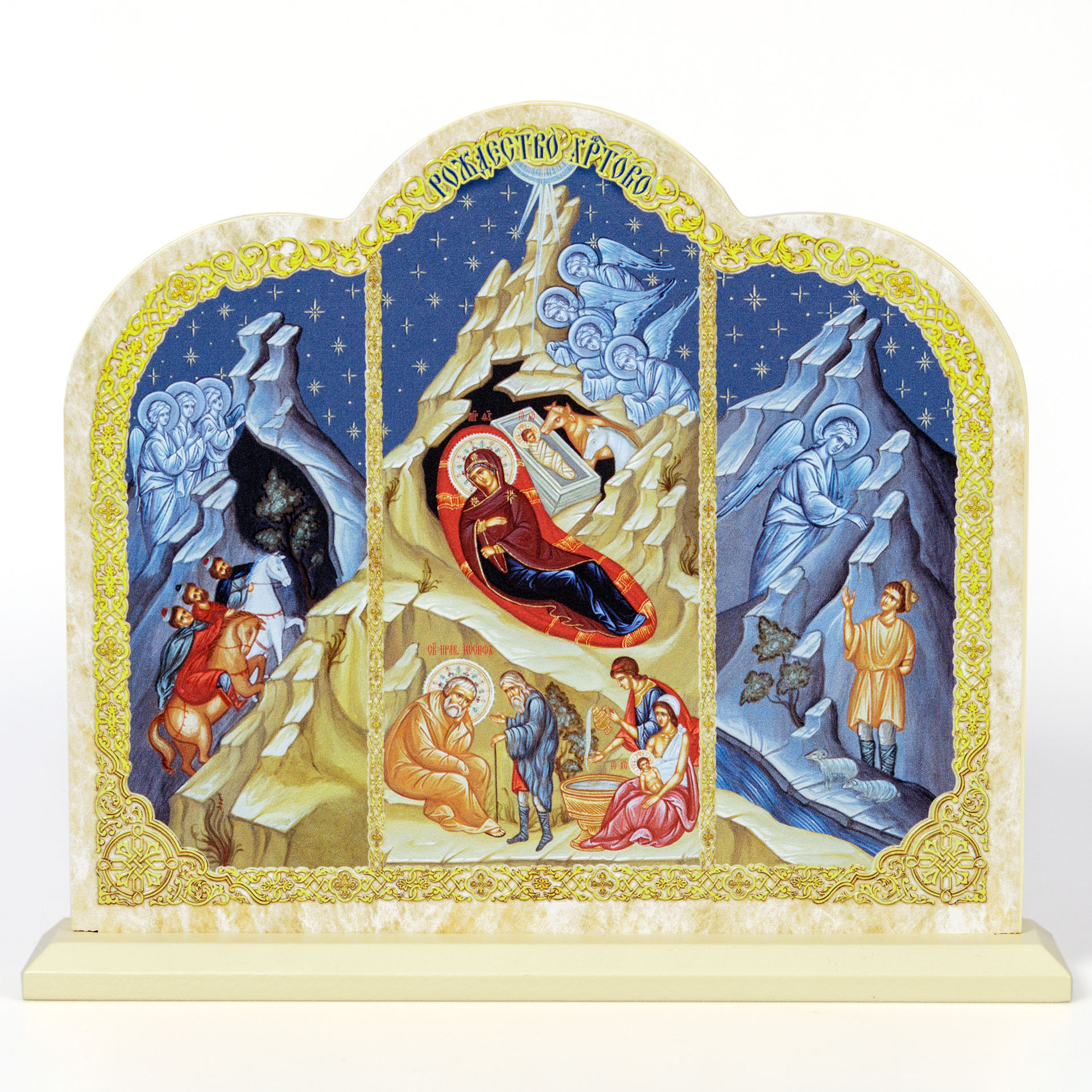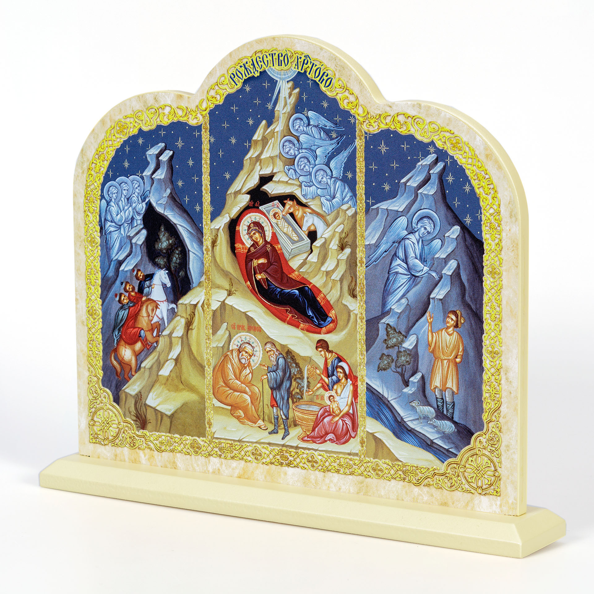 Иконостас домашний 24х30 см с Избранными Святыми на подставке №2 Рождество Христово 1
