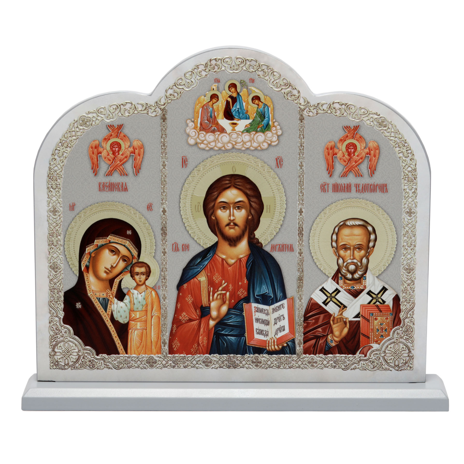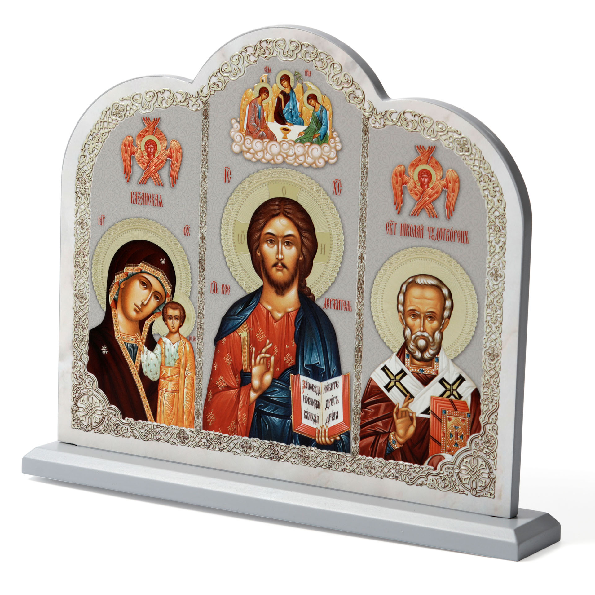 Иконостас домашний 24х30 см с Избранными Святыми на подставке №2 серый