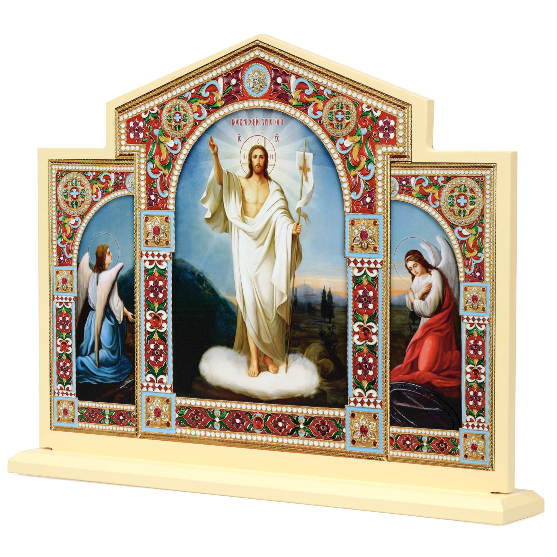 Иконостас домашний 30х40 см с Избранными Святыми на подставке №3 Воскресение Христово