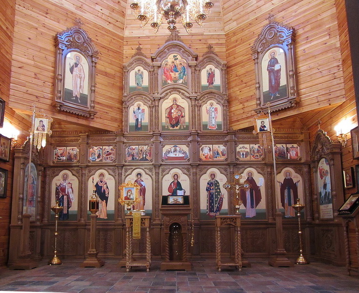 Тело иконостаса : резьба по дереву, покраска морение, лак; иконы - фотопечать на канвасе