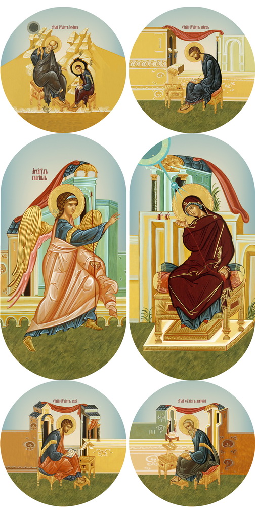 Иконы 20х40, МДФ, овальные (комплект 6 шт.) Царские врата иконописные №3