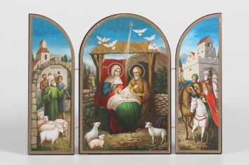 Складни деревянные 18х24 трехстворчатые, двойное тиснение, арочные, в упаковке Рождество Христово 5