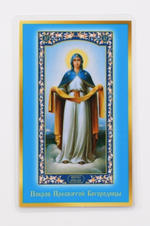 Икона в жесткой ламинации 5х8 с оборотом Покров (ростовой)