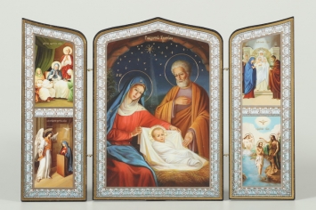 Складни деревянные 19х28 трёхстворчатые, двойное тиснение, фигурные, в упаковке Рождество Христово
