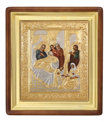 Икона живописная в киоте 24х30 масло, риза №283, киот №1 Рождество Богородицы