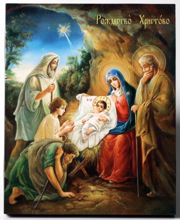 Икона на доске 40х50 объемная печать, лак Рождество Христово с праздниками