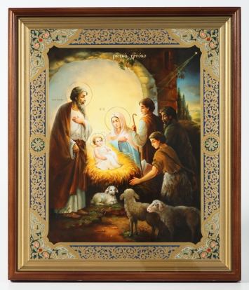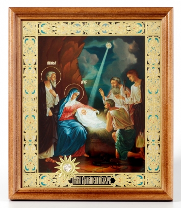 Икона в киоте 40х50 сложный, двойное тиснение Рождество Христово 2
