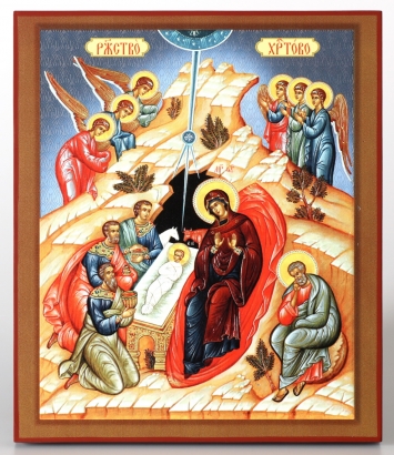 Икона на доске 13х15 объёмная печать, лак Рождество Христово 1