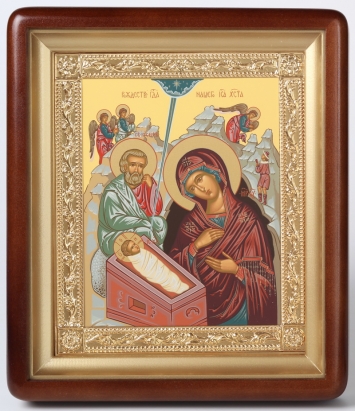 Икона в киоте 18х24 фигурный, темпера, рамка золочёная Рождество Христово 3