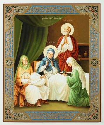 Икона на деревянном планшете 30х40 двойное тиснение, ДСП, ПВХ Рождество Богородицы 2