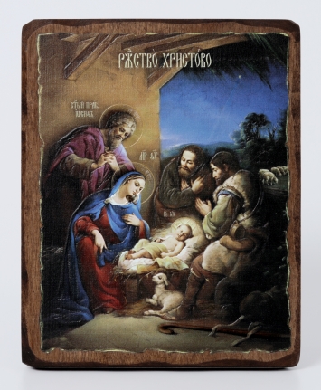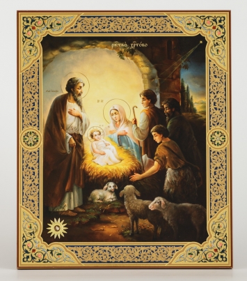 Икона на доске 30х40 объемная печать, лак №2 Рождество Христово