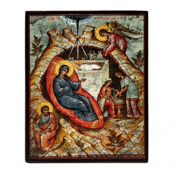 Икона на доске 12,5х16,5 объёмная печать, лак Рождество Христово 4