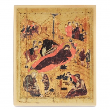 Икона на деревянном планшете 11х13 двойное тиснение, БЗГ Рождество Христово 35