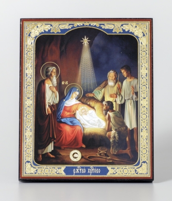 Икона на деревянном планшете 11х13 двойное тиснение (18мм), БЗГ, упаковка Рождество Христово 21