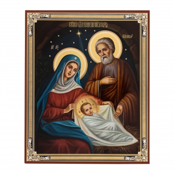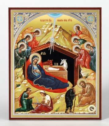 Икона на деревянном планшете 11х13 двойное тиснение (18мм), БЗГ, упаковка Рождество Христово 39
