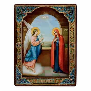 Икона на доске 30х40 объемная печать, лак №2 Благовещение