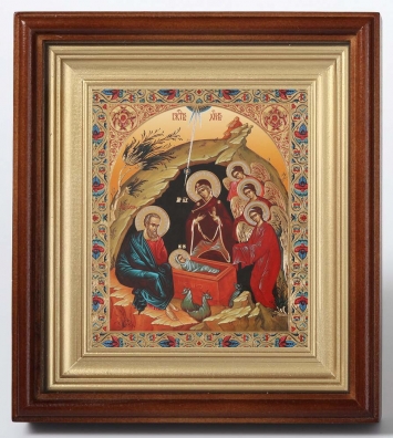 Икона в деревянной рамке №1 11х13 двойное тиснение Рождество Христово 68