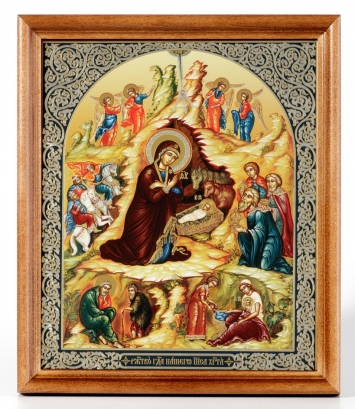 Икона в деревянной рамке №1 18х24 двойное тиснение Рождество Христово 40