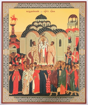 Икона на оргалите №1 18х24 двойное тиснение Воздвижение Креста Господня