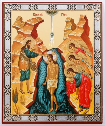Икона на оргалите №1 11х13 двойное тиснение Крещение Господне
