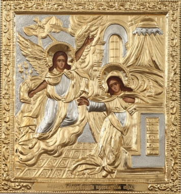 Икона в деревянной рамке №1 18х24 двойное тиснение Благовещение