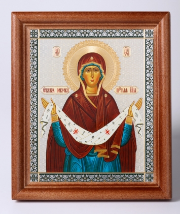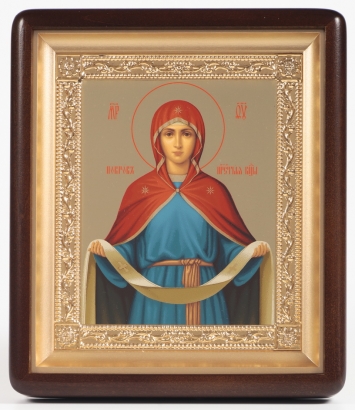 Икона в деревянной рамке №1 30х40 тиснение, упаковка Покров (поясной)