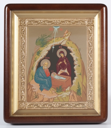 Икона в деревянной рамке №1 18х24 двойное тиснение Рождество Христово