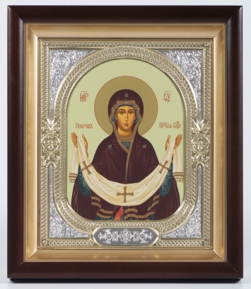 Икона в киоте 18х24 сложный, темпера, риза-рамка №1 Покров