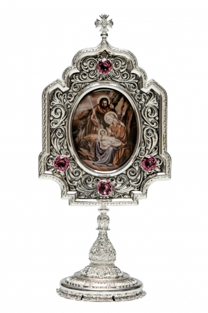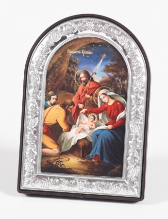 Икона настольная №6 деколь / серебрение / Рождество Христово