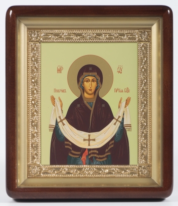 Икона живописная в киоте 50х100 масло, риза №197, киот №1 Покров Пресвятой БМ