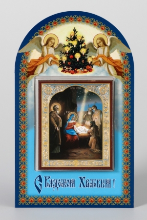 Икона в жесткой ламинации 5х8 с оборотом Рождество Христово 1