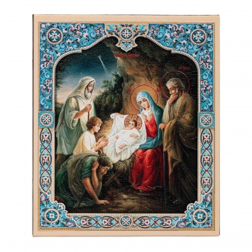 Икона на доске 22х26 объёмная печать, лак Рождество Христово 4