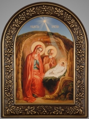 Икона в киоте 18х24 фигурный, темпера №9 Рождество Христово