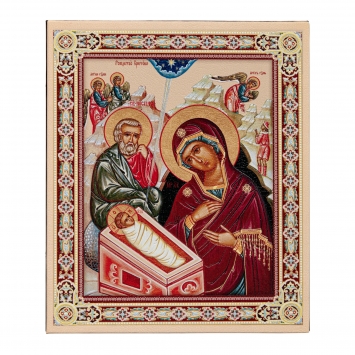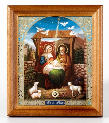Икона на доске 22х26 объёмная печать, лак Рождество Христово 9