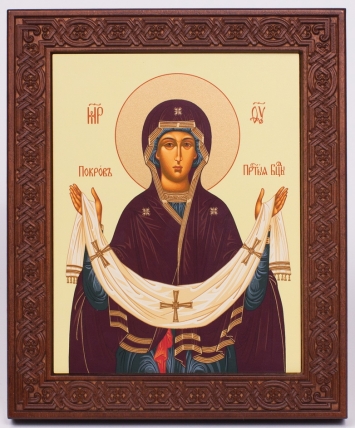 Икона на дереве 18х22 прокат, ковчег с резным обрамлением, упаковка Покров