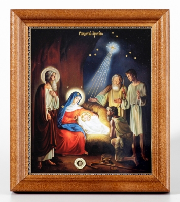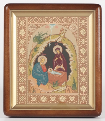 Икона в деревянной рамке №1 18х24 двойное тиснение Рождество Христово 39