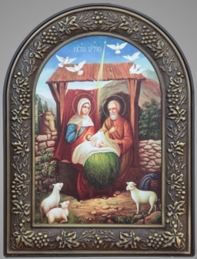 Икона в пластмассовой рамке 18х24 арочная патинирование Рождество Христово 3