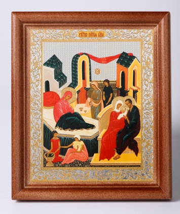 Икона в деревянной рамке №1 11х13 двойное тиснение Рождество Богородицы