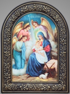 Икона в пластмассовой рамке 18х24 арочная патинирование Рождество Христово 6