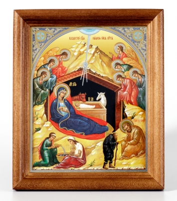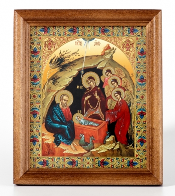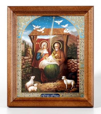 Икона в деревянной рамке №1 11х13 двойное тиснение Рождество Христово 45