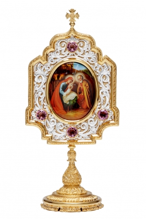 Икона настольная №6 деколь / золочение, серебрение / Рождество Христово