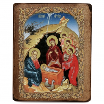 Икона на деревянном планшете 18х24 двойное тиснение, ДСП, ПВХ, БЗГ, упаковка Рождество Христово