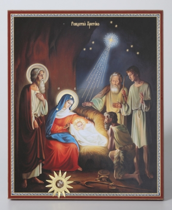 Икона настольная №6 деколь / золочение, серебрение / Рождество Христово 2