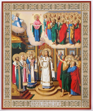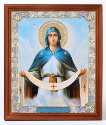 Икона в деревянной рамке №1 18х24 двойное тиснение Покров (поясной)