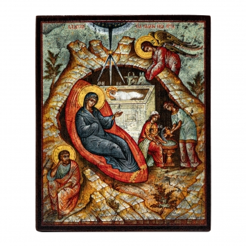 Икона на дереве 9х11 лак Рождество Христово