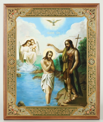 Икона в деревянной рамке №1 30х40 двойное тиснение, упаковка Богоявление 2