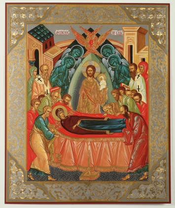 Икона на оргалите №1 24х18 двойное тиснение Успение Богородицы 3