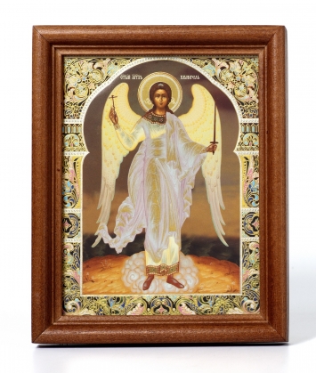 Икона в деревянной рамке 13х18 конгрев, плёнка (без стекла) Ангел-Хранитель (с клеймами)